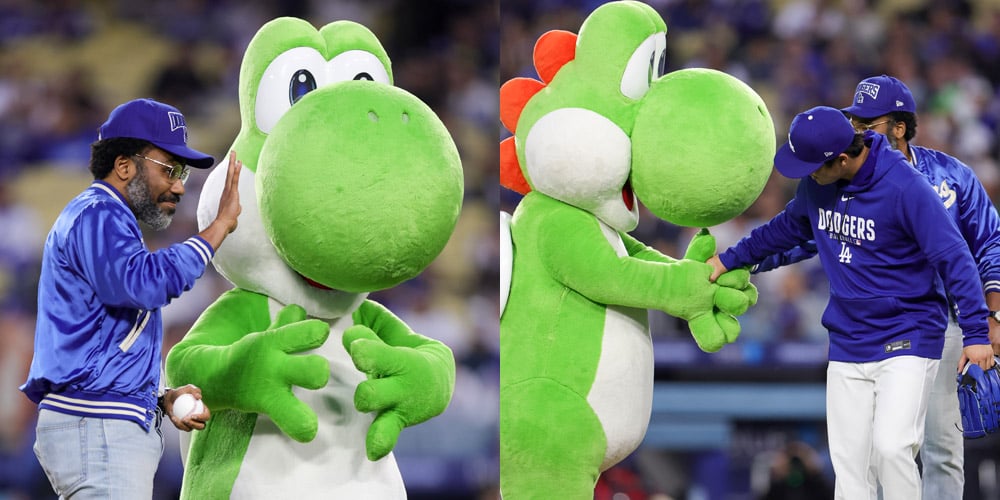 Donald Glover, poznat po ulogama u „Spider-Man: Homecoming“ i animiranom hitu „Spider-Man: Across the Spider-Verse“, pojavio se na Dodger Stadiumu u Los Anđelesu 31. marta 2026. povodom promotivnih aktivnosti za film „Super Mario Galaxy Movie“, gde je pozajmio glas omiljenom Nintendo liku Yoshi. Glover je bacio prvu loptu na utakmici Los Angeles Dodgers, a pridružili su mu se i sam Yoshi, kao i Dodgers pitcher Yoshinobu Yamamoto.
