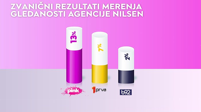 Tokom proteklog vikenda, prema zvaničnim rezultatima merenja gledanosti agencije Nilsen, jedna komercijalna televizija zabeležila je najviši broj gledalaca u Srbiji. Prema saopštenju, bila je najgledanija među ukupnom publikom, posebno kod gledalaca uzrasta od 18 do 49 godina, ženske publike iste starosne grupe, kao i kod urbanog stanovništva i gledalaca iz Beograda.